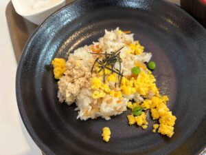 エビピラフとコーンスープでした。